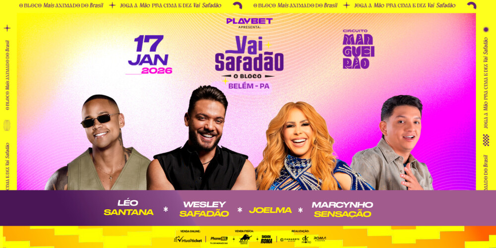 O maior pré-carnaval do Brasil volta em 17 de janeiro de 2026, no Circuito Mangueirão. Com Wesley Safadão no comando e um time de peso — Léo Santana, Joelma e Marcynho Sensação — a previsão é de uma edição histórica.